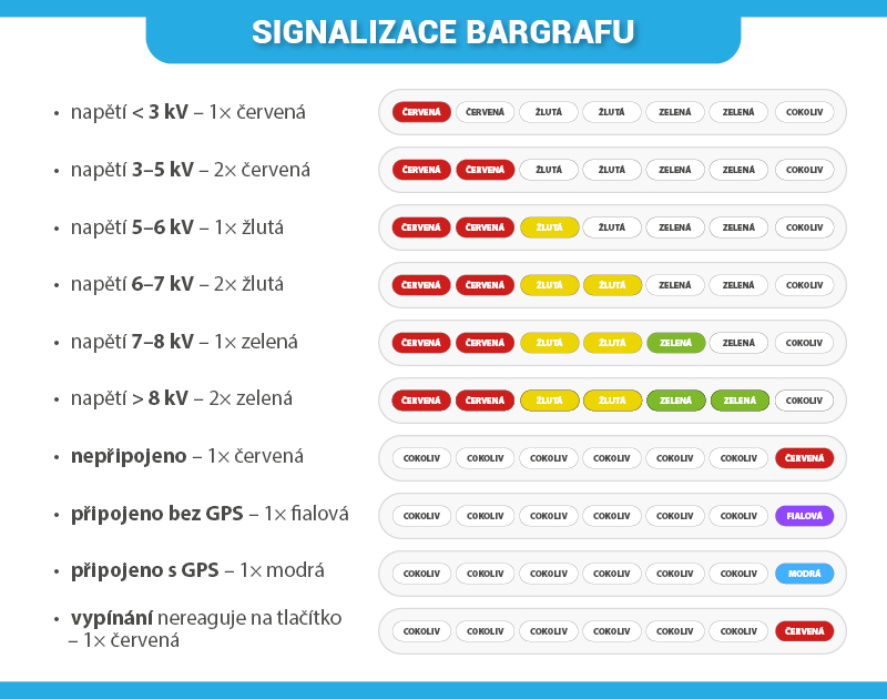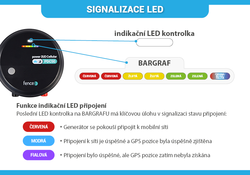 Pro zajištění snadné orientace a přehledu o stavu vstupního napětí, GPS a připojení k mobilní síti je na LTE generátoru integrován BARGRAF. Skládá se ze sedmi indikačních LED kontrolek seřazených zleva doprava.